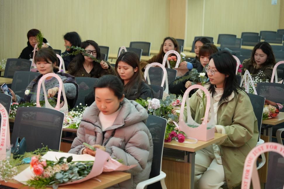 为庆祝第115个国际妇女节,丰富女教工的精神文化生活,3月7日上午,马克思主义学院工会在青马基地一楼会议室举办了鲜花“悦心”插花艺术活动。此次活动吸引了众多女教职工参与,现场花香四溢,气氛热烈,共同庆祝这个属于女性的节日。