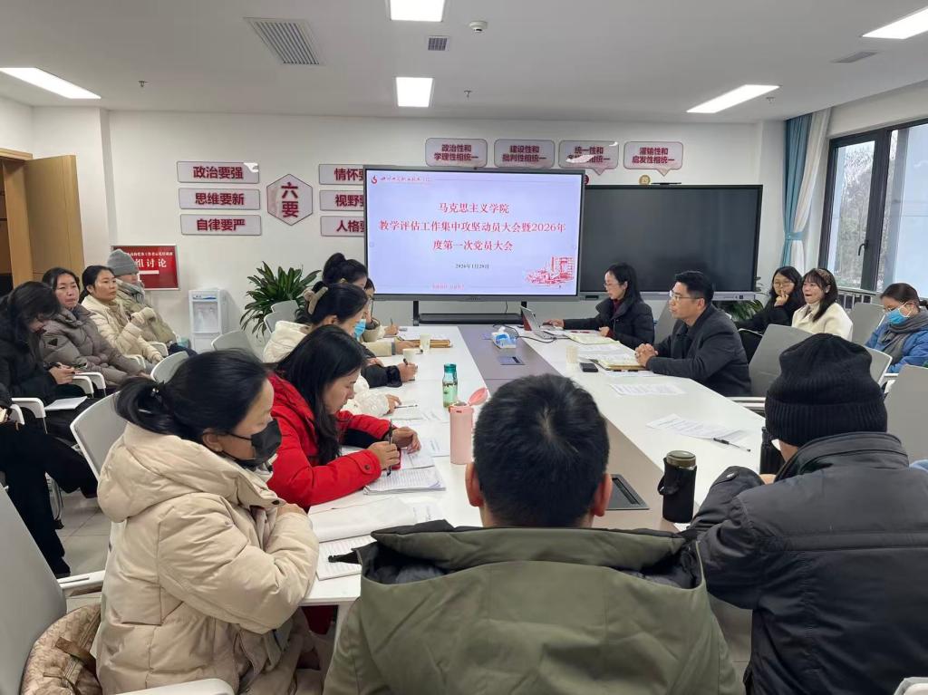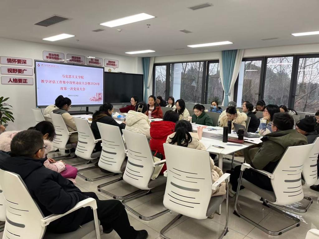 为贯彻落实学校教学工作评估部署工作会议精神,高质量推进马克思主义学院教学评估各项准备工作,2026 年 1 月20日下午,马克思主义学院组织召开了教学评估工作集中攻坚动员大会暨2026年第一次党员大会。会议由蔡小丽主持,党委常委、副院长刘文钦、马克思主义学院党政班子成员、思政继教党支部全体党员及全体专兼职思政课教师参加会议。